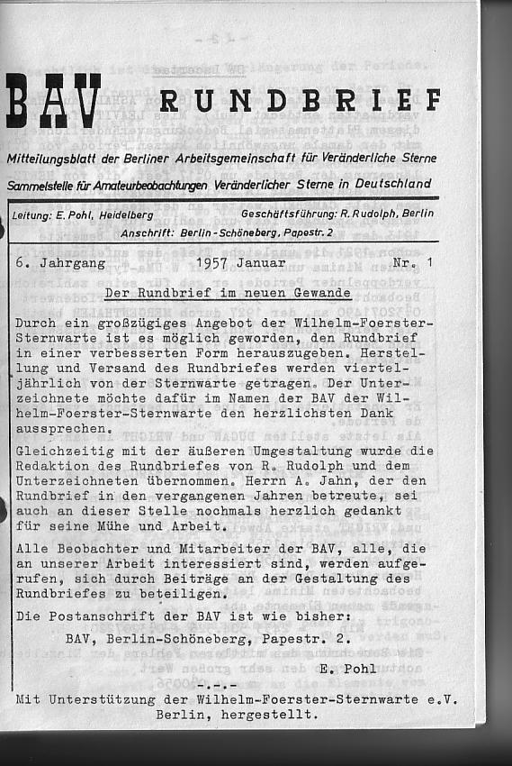 BAV Rundbrief 1/1957 Seite 1