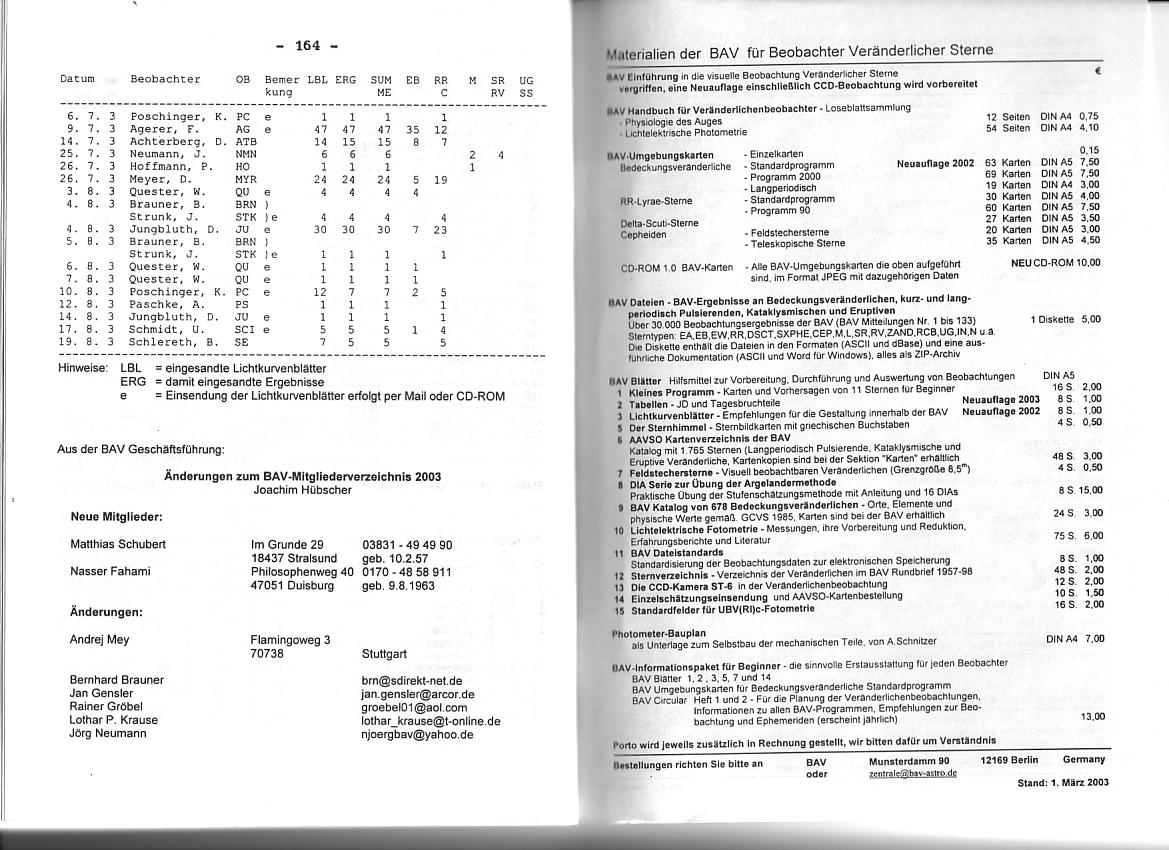 BAV Rundbrief 3/2003 Seite 164