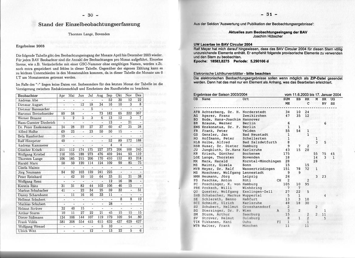 BAV Rundbrief 1/2004 Seite 30-31